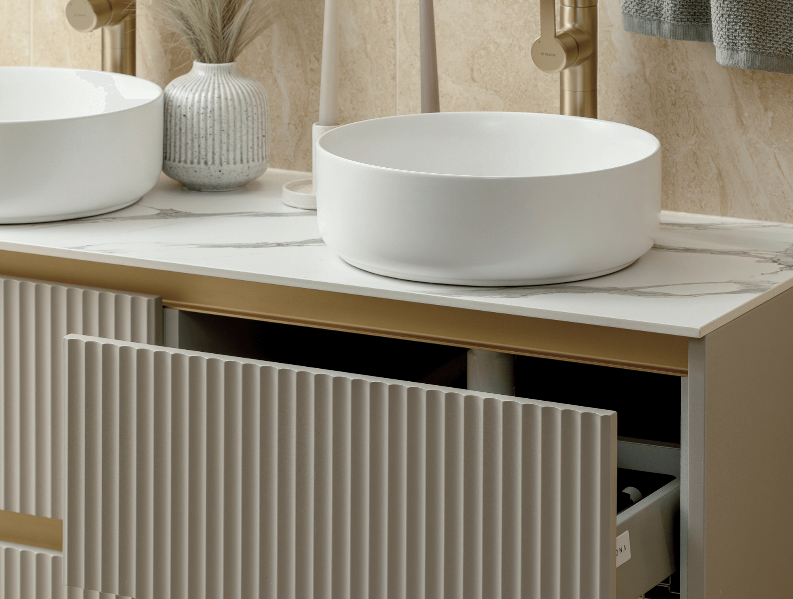 Á fullkomnu baðherbergi mætast þægindi, notagildi og falleg hönnun. Baðherbergisinnréttingarnar frá Taumona eru hannaðar til að nýta rýmið sem allra best.