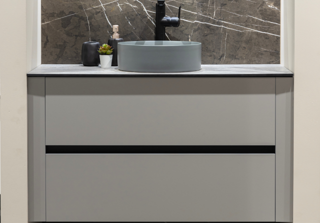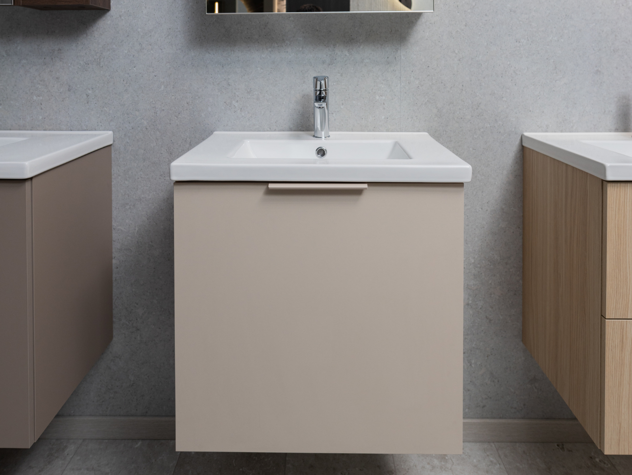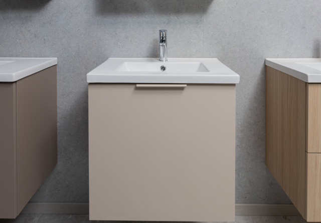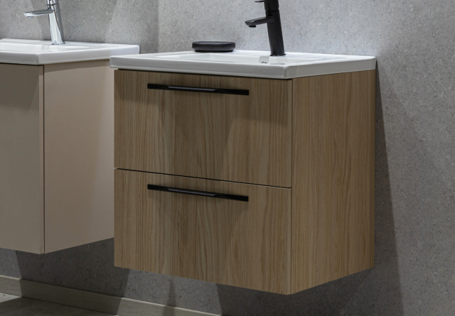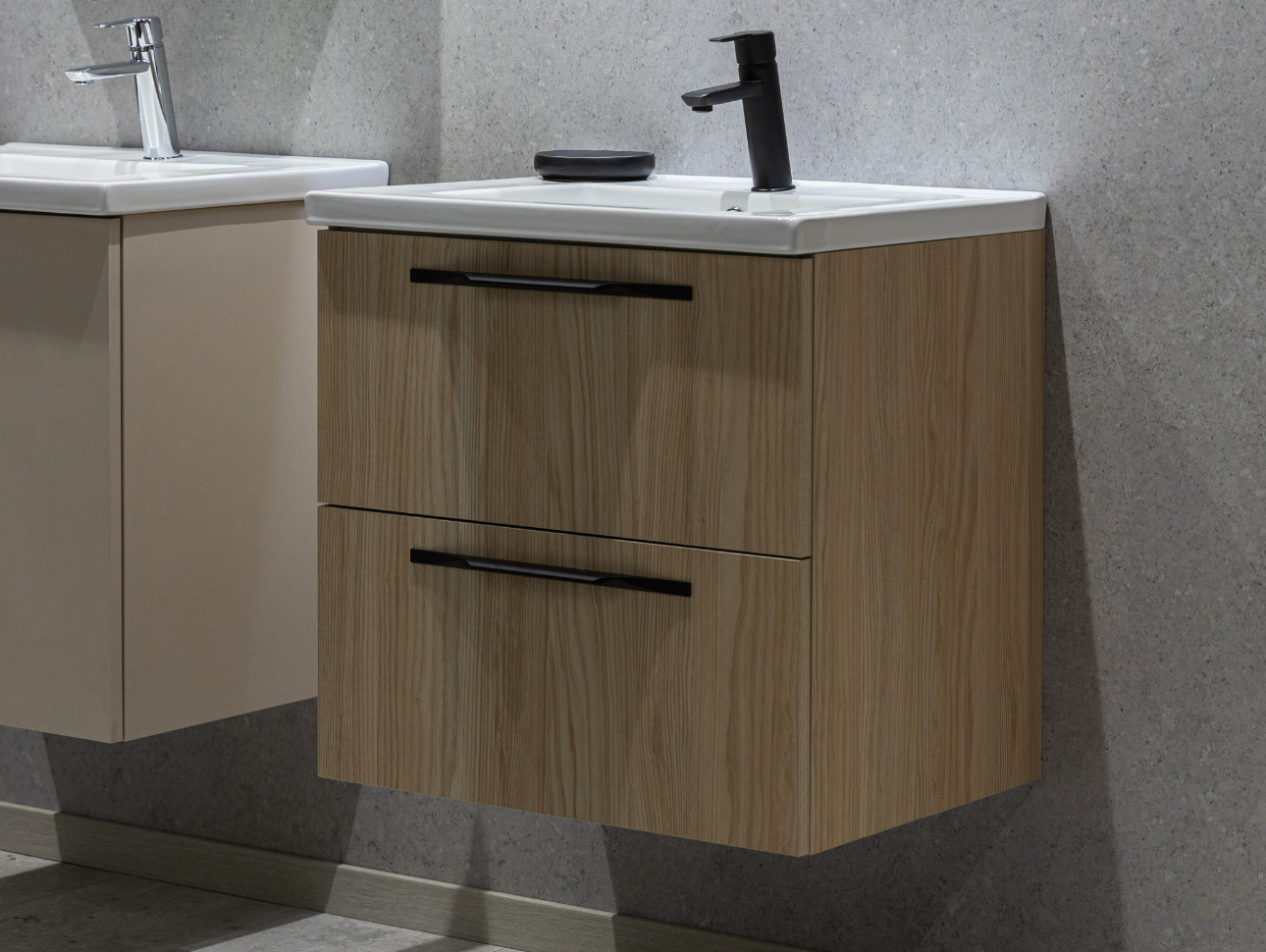 Hágæðaefnin LMPD, lakkað MDF og náttúrulegur eikarspónn aðlagast vel að mismunandi þörfum og hönnun baðherbergja.