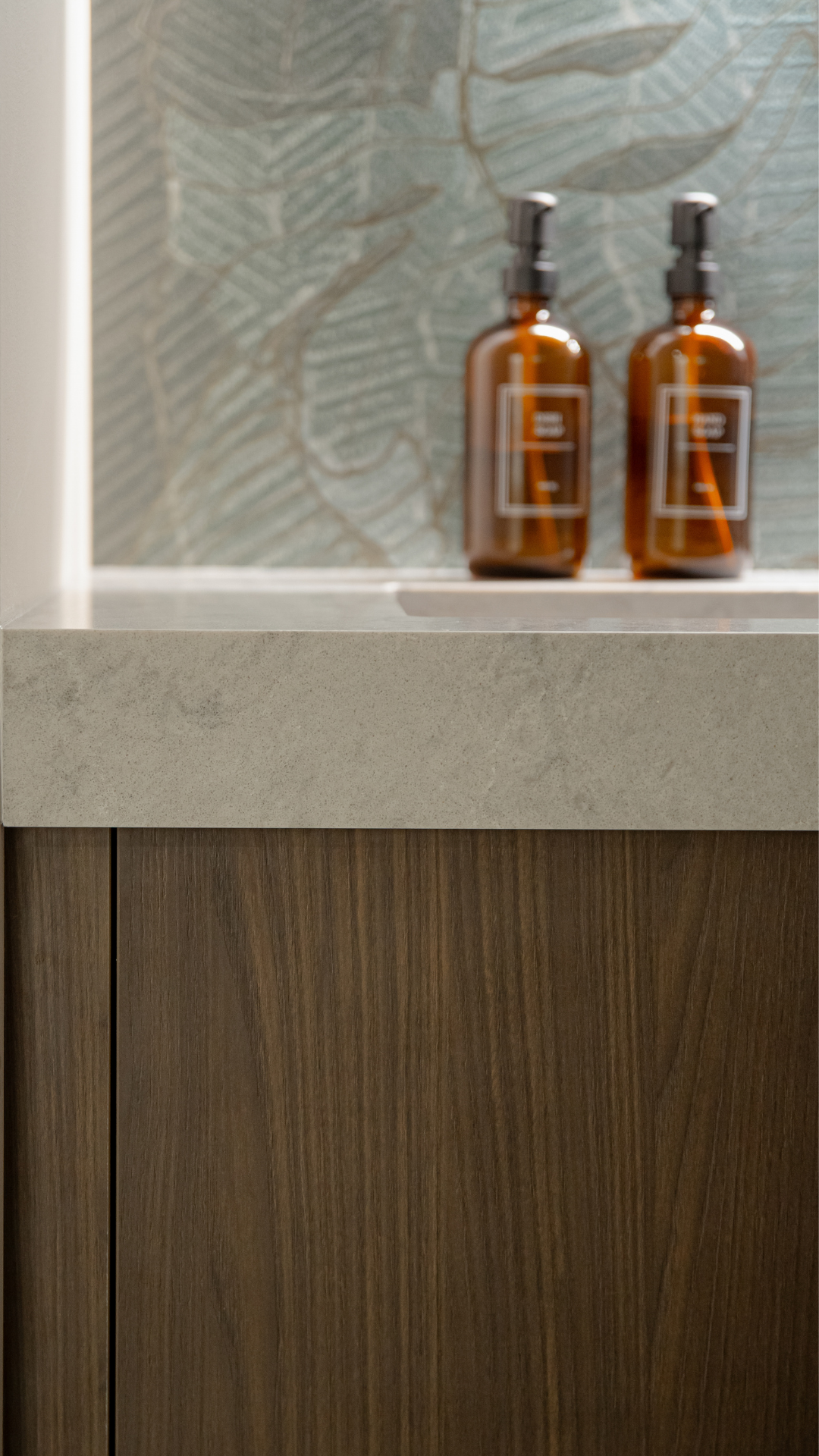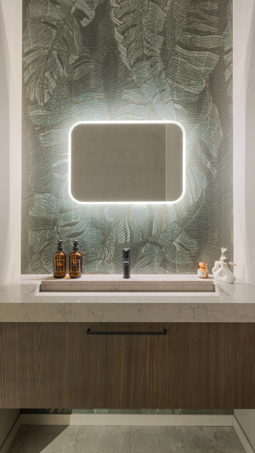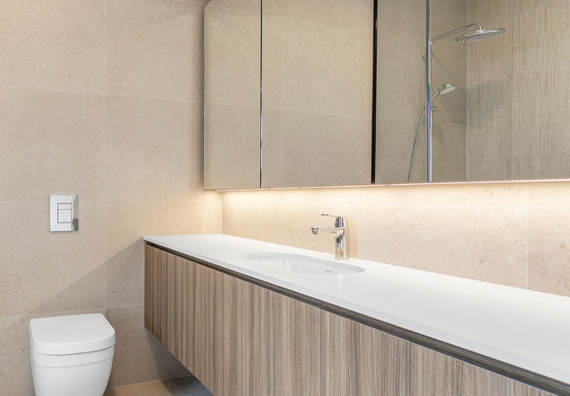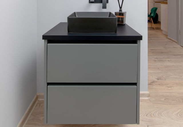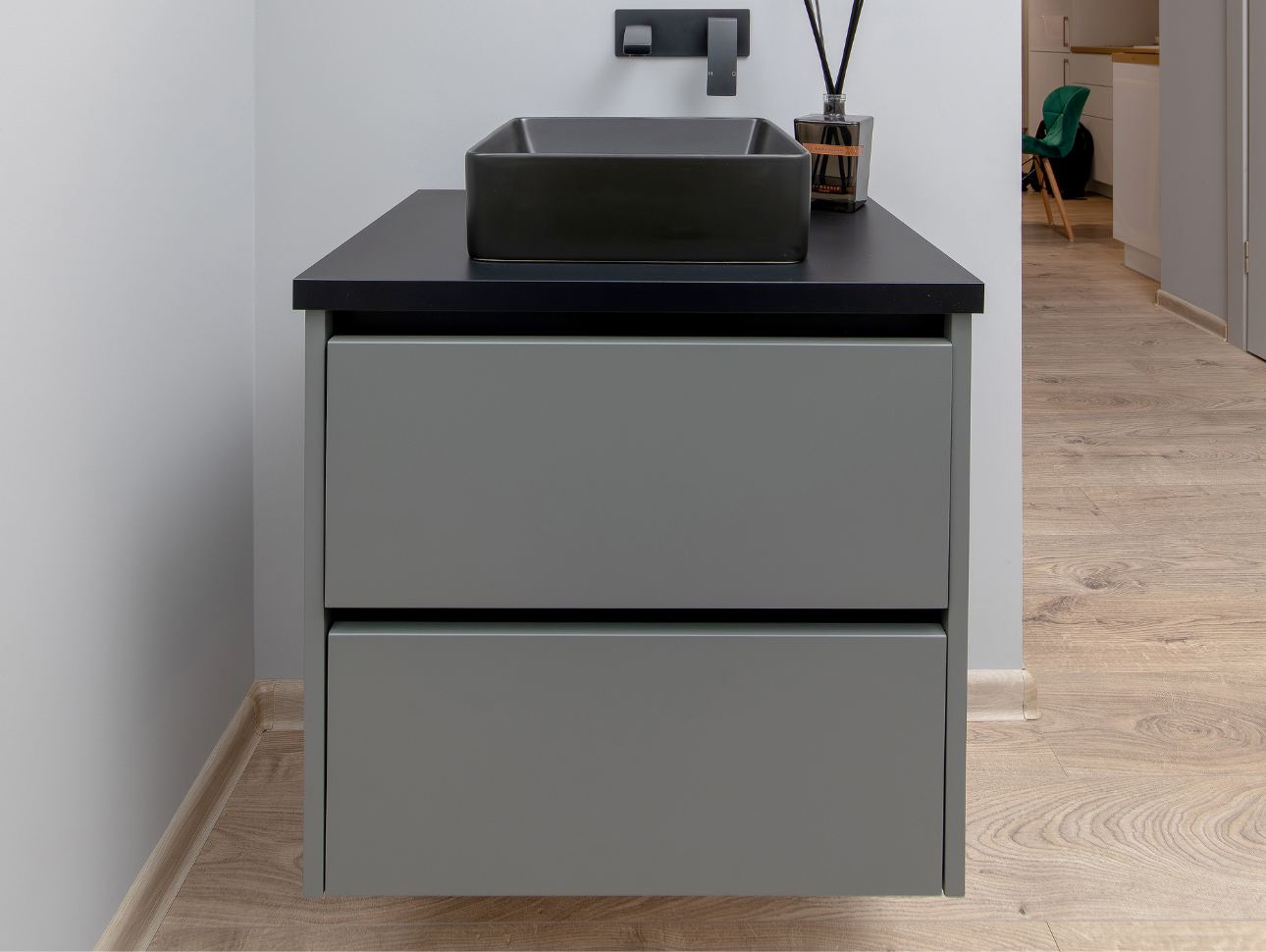 Hágæðaefnin LMPD, lakkað MDF og náttúrulegur eikarspónn aðlagast vel að mismunandi þörfum og hönnun baðherbergja.